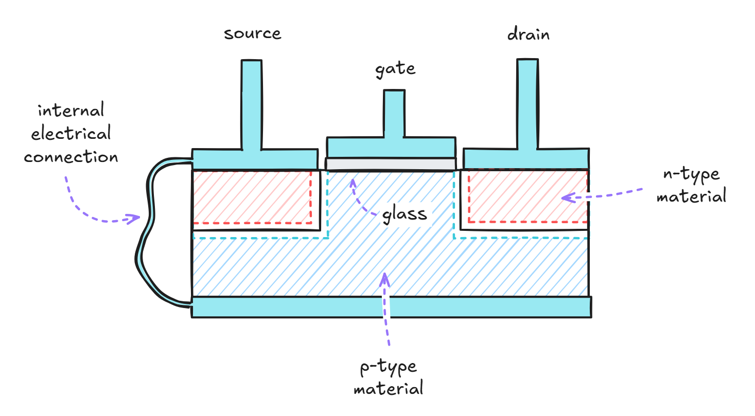 Much like JFETs, MOSFETs are designed to control the flow of current between their two primary terminals — source and drain — via a variable voltage applied to the gate. That said, their internal architecture is a bit more complex: