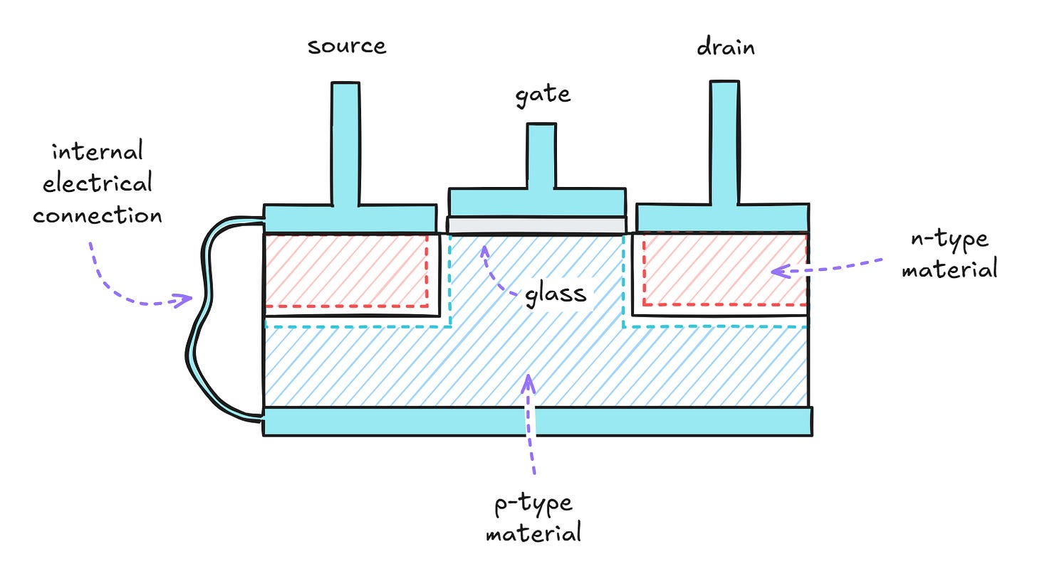 Some readers might be wondering why I didn’t begin with the bipolar junction transistor. The answer is simple: the venerable BJT is the oldest truly successful transistor design, but it’s also the messiest of the bunch.