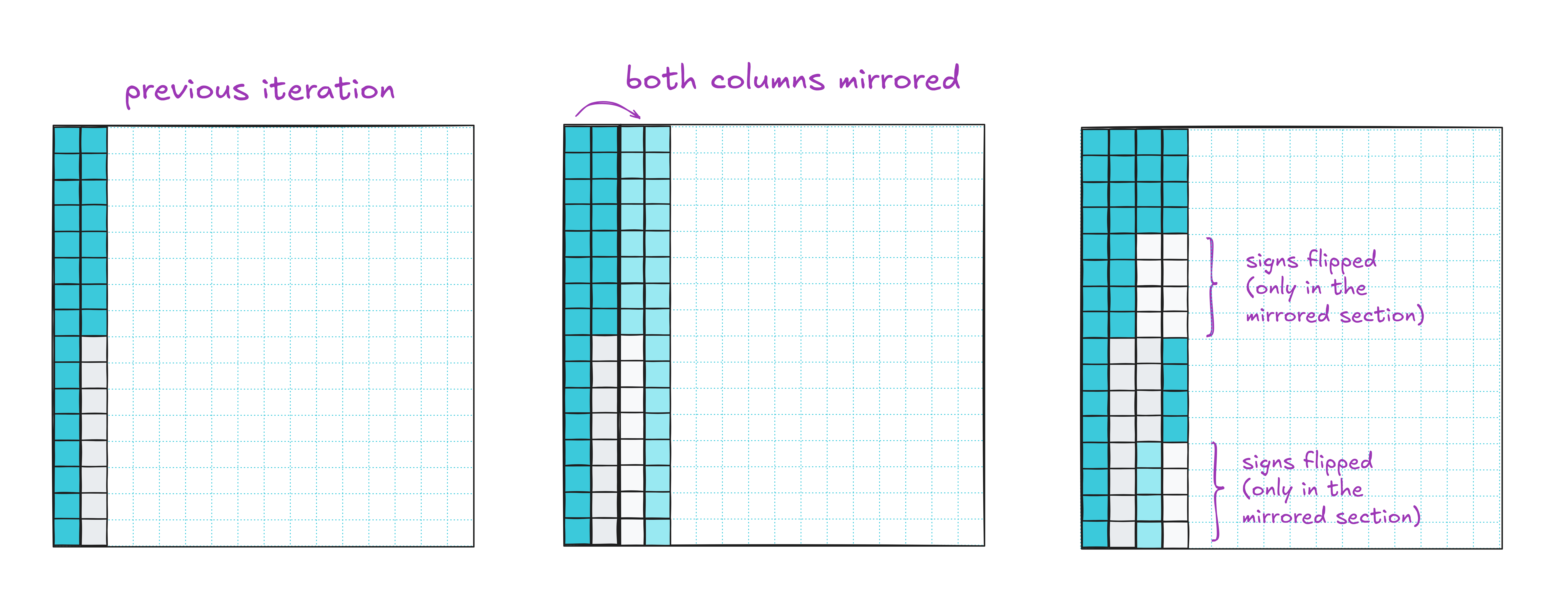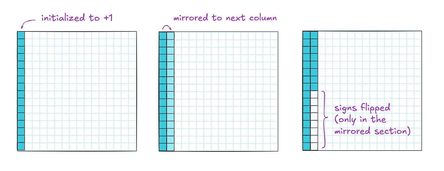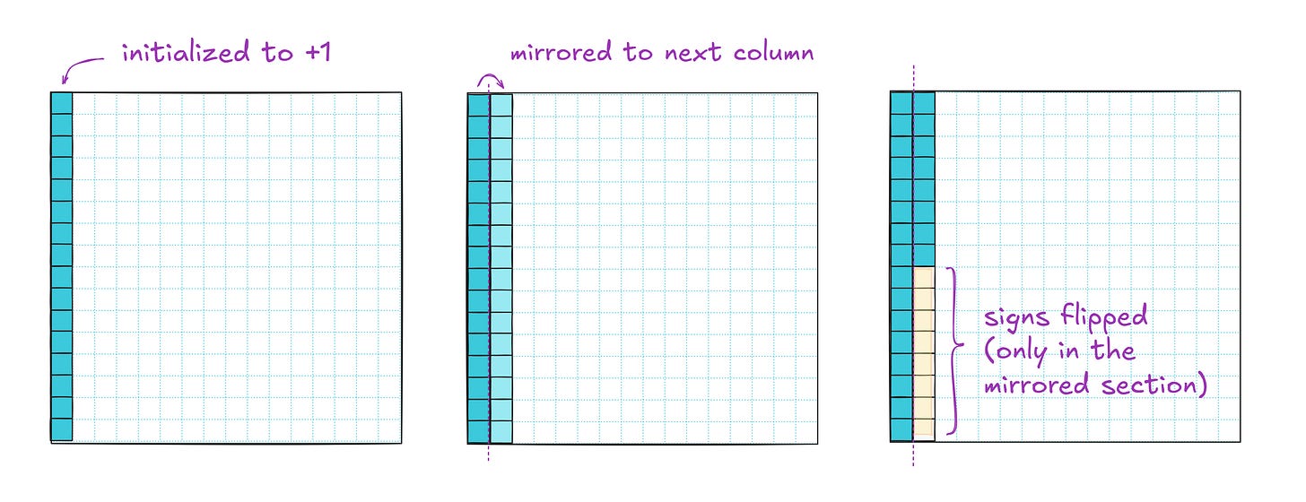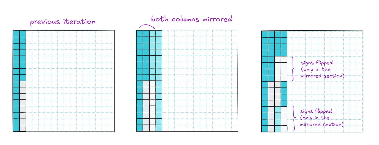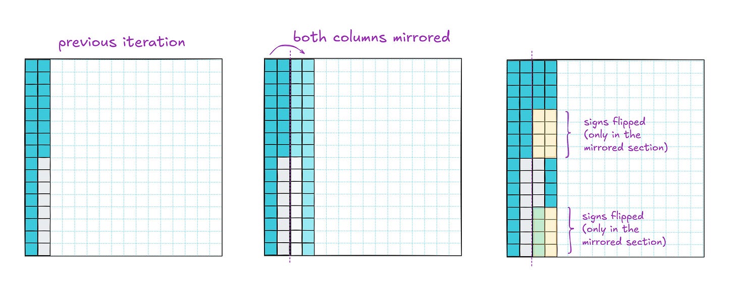 After that, we mirror all four columns and divide the rows into eight buckets for sign-flipping. One more iteration and we’re done: