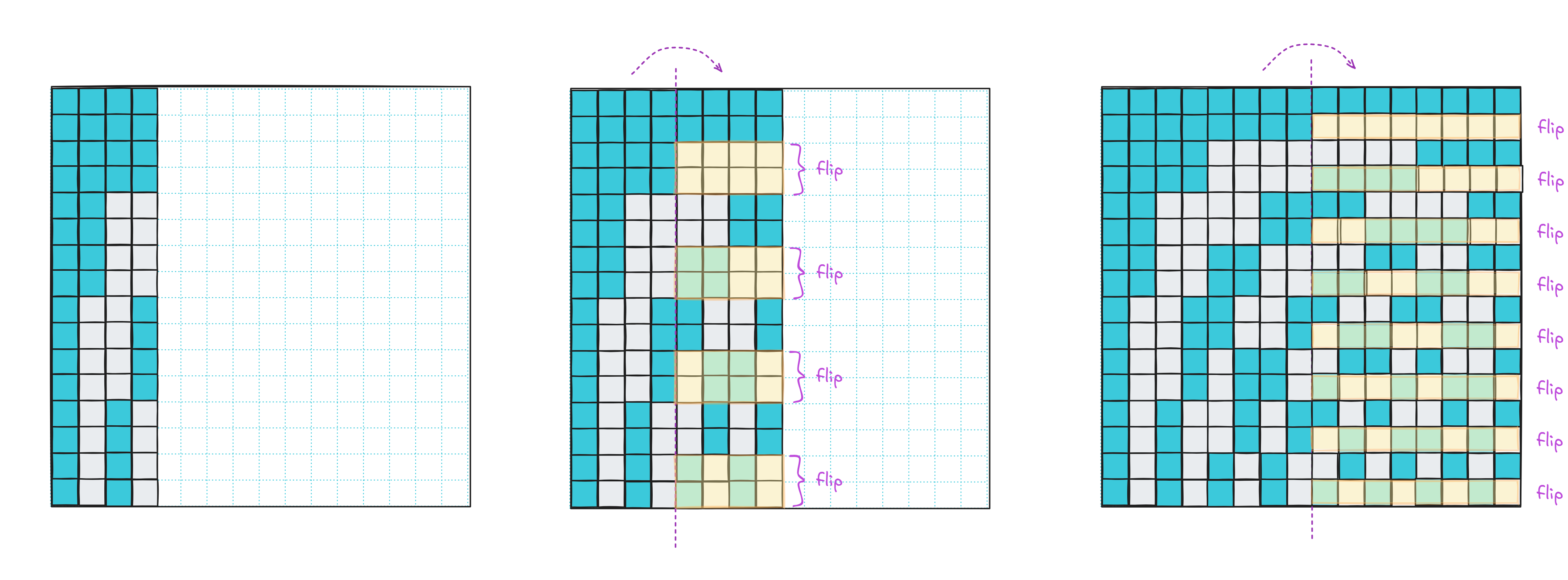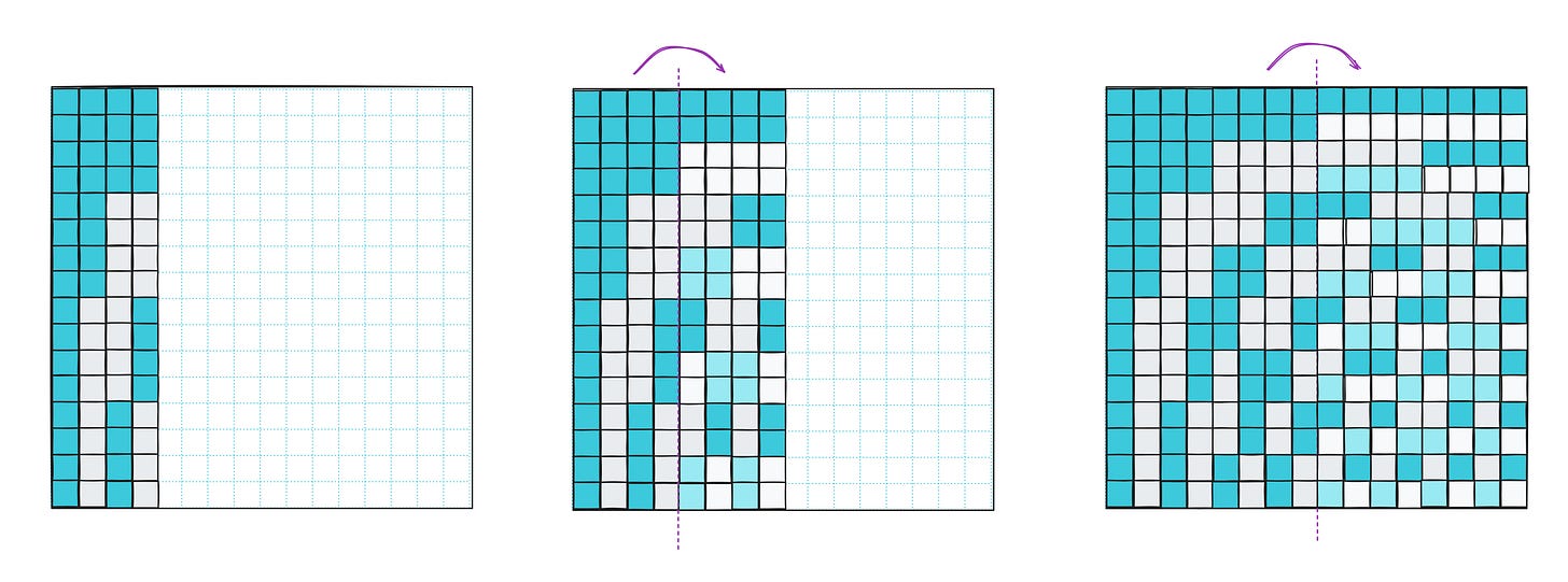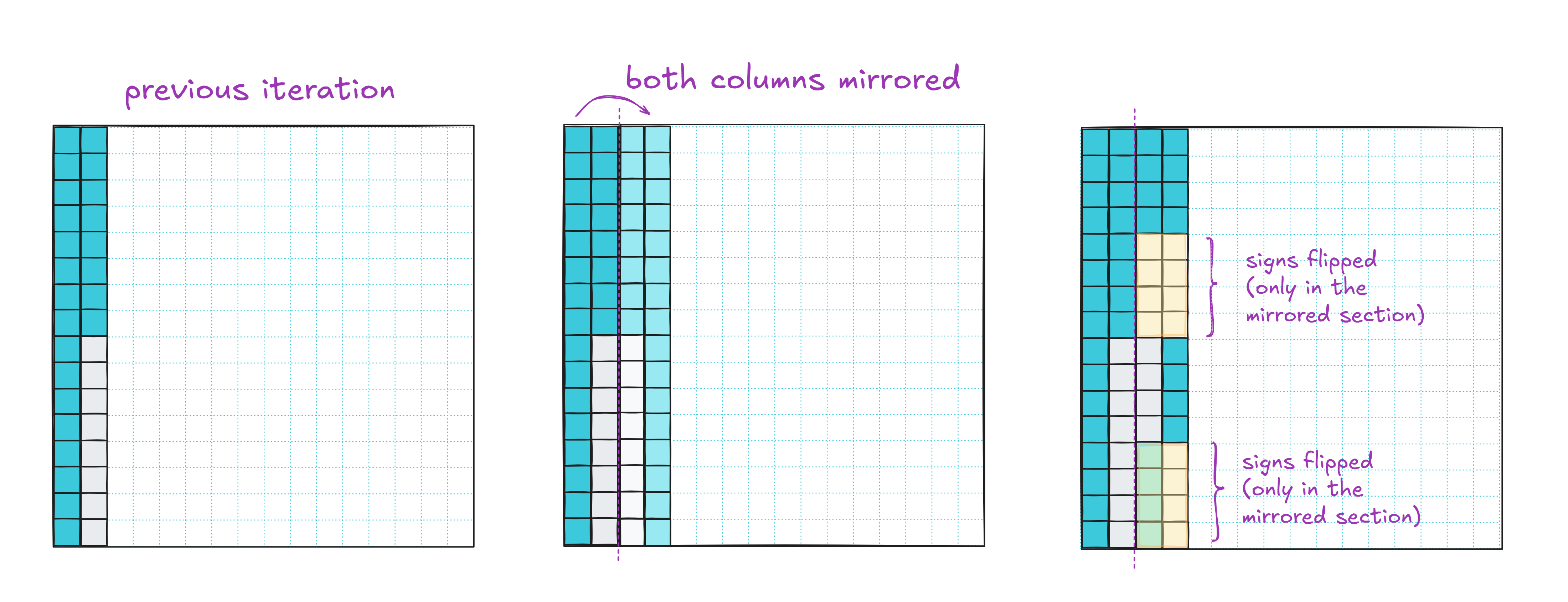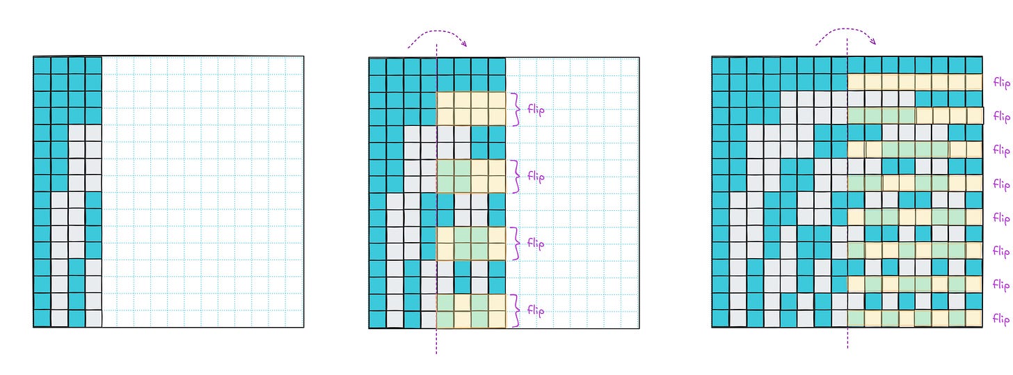 After that, we mirror all four columns and divide the rows into eight buckets for sign-flipping. One more iteration and we’re done: