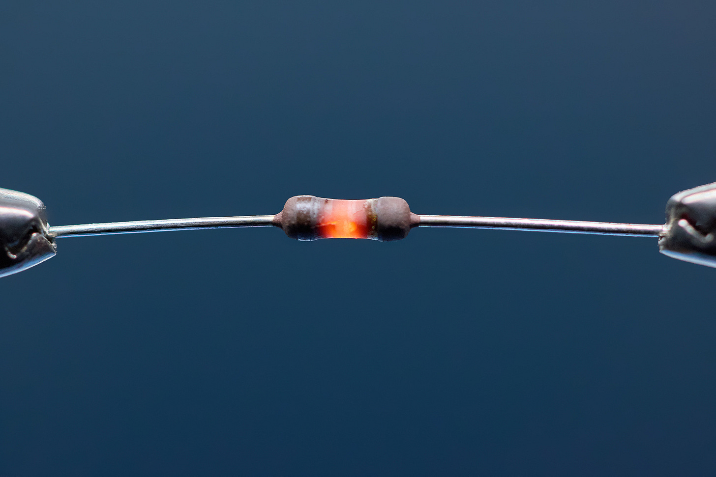 Most of the time, reasonably-sized copper conductors have resistance low enough to be negligible. When we want to impede currents in a well-controlled way, we use resistors. Resistors are simple electronic components with fine-tuned resistance; they are usually made from carbon or thin metal film.