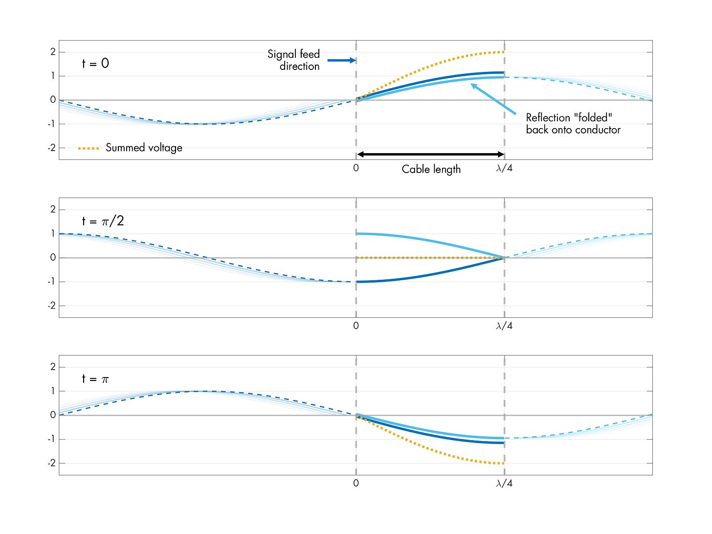 Each reflection is basically just the previous quarter-wave “folded back” onto each rod. (If you’re iffy on signal reflections, I recommend reviewing this article.)